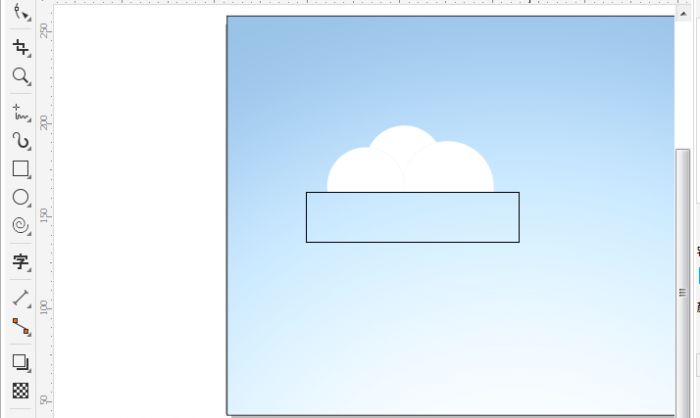 接下来,我们会在CDR矢量绘图软件中,选中云朵,在右上方的属性栏中选择焊接,连在一起,对焊接在一起的圆形进行一个图形的修剪,选择矩形工具,在三个圆形的下方绘制出一个矩形,在菜单栏中,选择对象→造型→修剪,就可以得到图中的效果,删掉矩形,复制一个云朵作为备用。