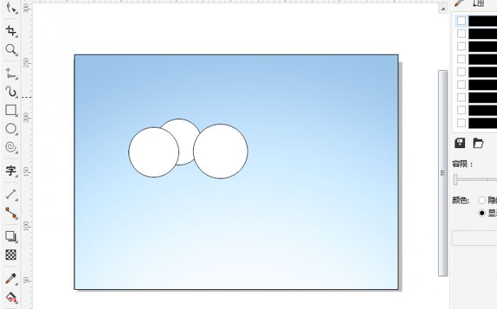 选择CDR矢量绘图软件中的椭圆形工具,按住“Ctrl+Alt”画几个正圆,大小不一,挨在一起。