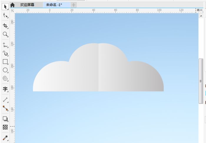 在CDR矢量绘图软件中,云朵填充为白色,选择右上角的轮廓笔,把轮廓宽度设置为“无”,这样就只剩下白色的填充图形。