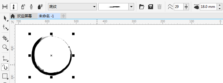 使用“椭圆工具”按住Ctrl键绘制正圆,在选中的状态下,使用“艺术笔工具”添加笔刷类型中的底纹效果,通过笔触宽度调整粗细,效果如图所示。