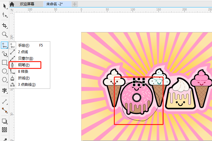 图2:选择“钢笔”工具