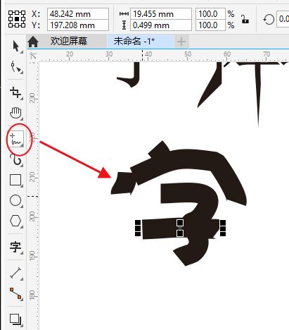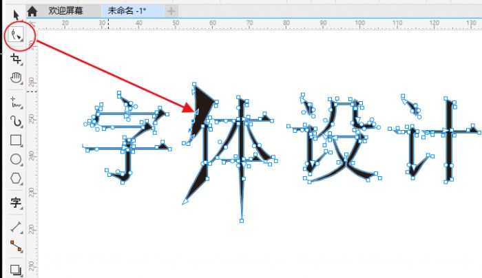 右边选择“形状工具”,通过拖拉每一个节点,就可以轻松调整字体形状啦。个人觉得比ai的锚点工具更人性化,更方便调整,效果比较直接。