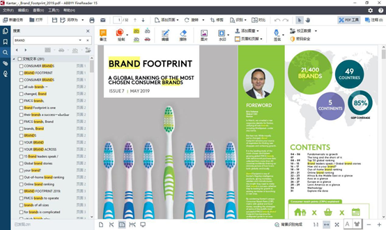 通过使用ABBYY FineReader 15 OCR文字识别软件的查看PDF文档功能,用户能进行更有效的文件查阅,通过搜索工具、浏览工具等快速搜索、定位所需的内容,并进行快速的文本、表格、图片等的复制,更有效的使用PDF文档中的内容。