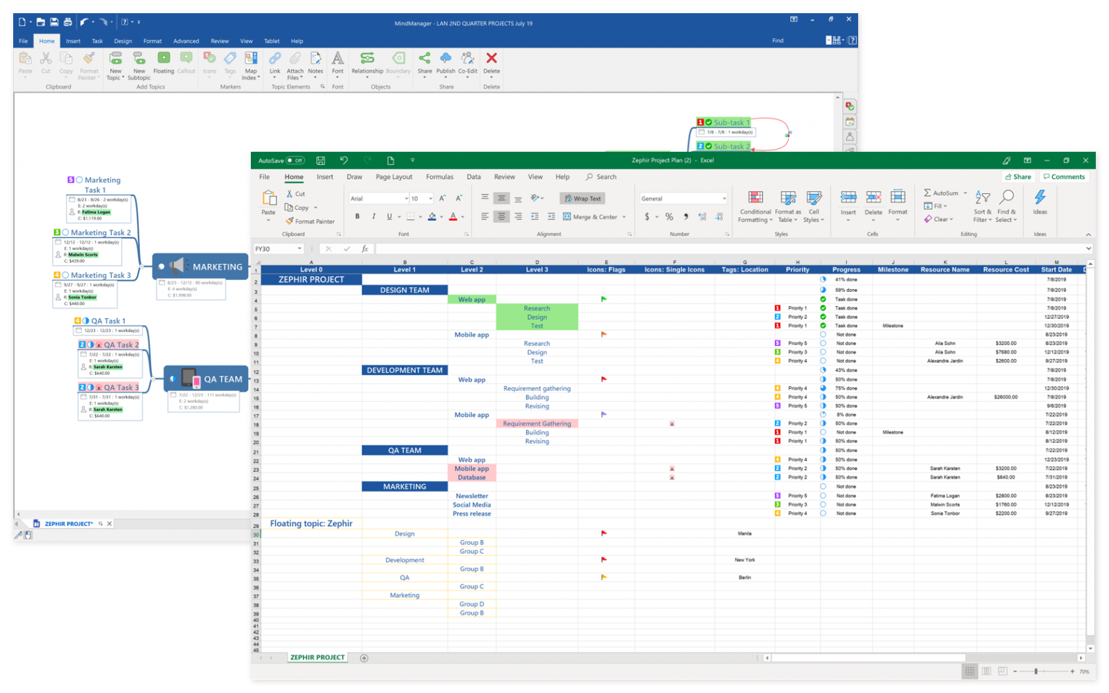•MindManager企业用户可以跟踪资源成本和一般成本