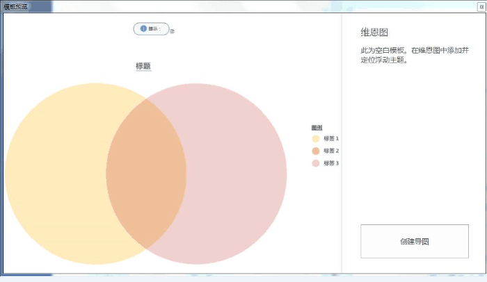 点击“维恩图”,就会出现一个这样的模板预览,点击右下角创建导图,就能够出现我们想要的维恩图模板了。