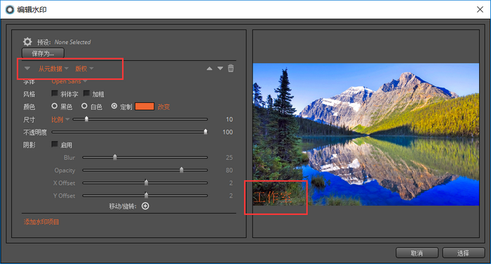 添加水印也不必自己去编辑文本,直接用元数据的字段就方便多了。从图片过滤到水印的添加,元数据都在减轻我们的操作过程,Alien Skin Exposure的元数据功能,是帮助用户操作的一大利器。