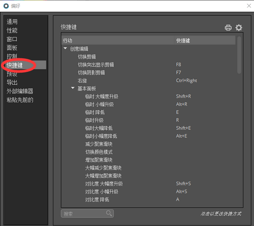 Alien Skin Exposure X4的快捷键功能在左上方菜单栏的“编辑”里选择“偏好”,下面让我们详细了解快捷键功能(如图二):