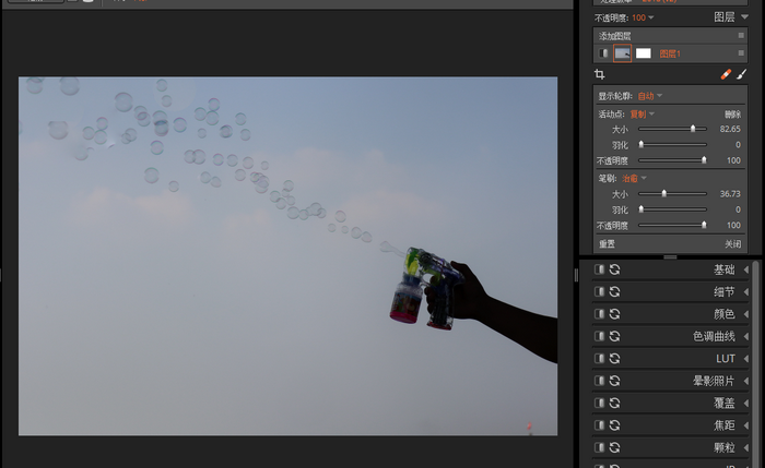 可以看到泡泡变得更丰富形状也更完整。为后期编辑照片打下完美的基础。