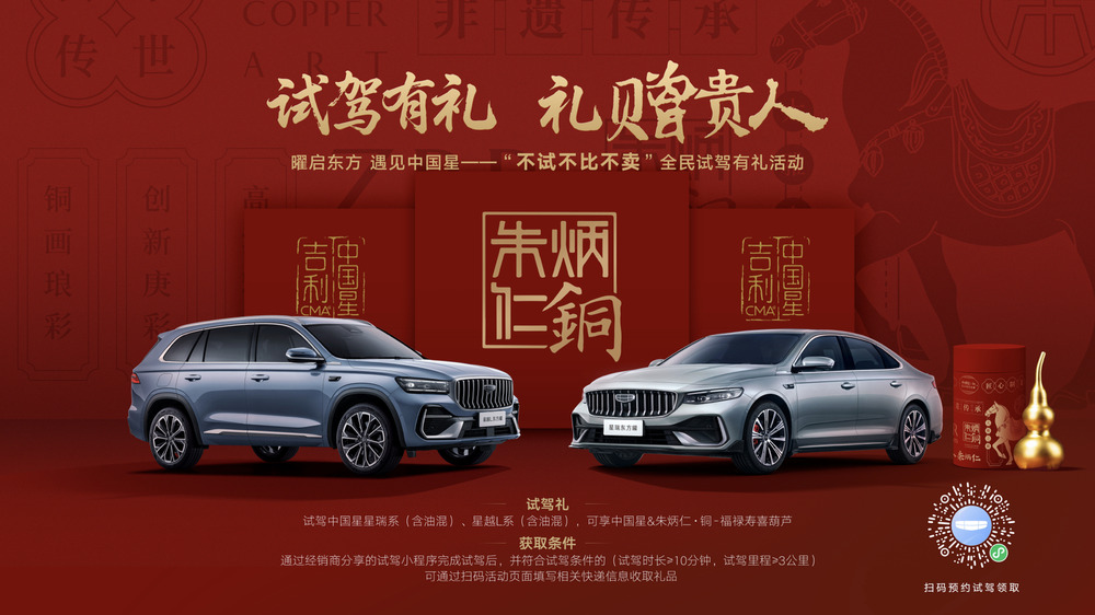 为了庆祝上市,吉利还准备了福利!从现在到12月31日,购买中国星星瑞全系、星越L全系的用户,每个月都有机会被抽中,免费获得中国星东方曜限量定制款MEIZU 22手机。而且,吉利中国星还和中国非遗铜雕品牌——朱炳仁·铜合作,推出了“试驾有礼,礼赠贵人”活动,只要去店里试驾中国星星瑞、星越L系列车型,就能拿到“朱炳仁·铜”匠心打造的【福禄寿喜葫芦挂件】一份。
