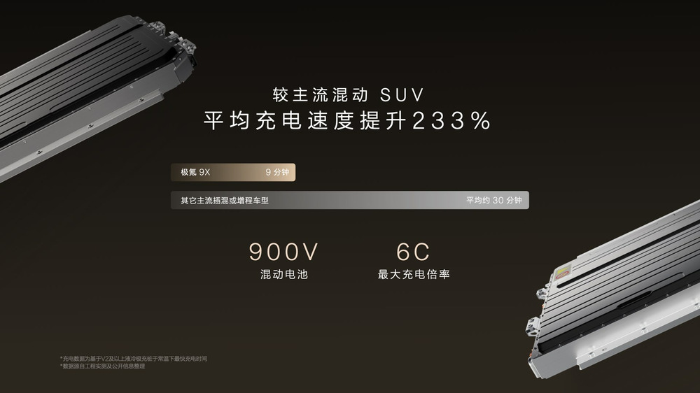 极氪9X全系采用900V大电池方案,支持6C超快充