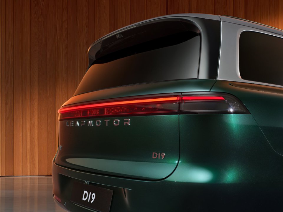 据介绍,零跑 D19 提供纯电、增程两种版本,纯电版电池容量 115kWh,续航可达 720km。该车型基于 1000V 高压平台打造,充电 15 分钟补充 350km 续航,最大功率 540kW。