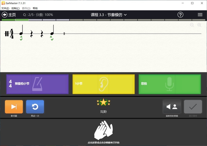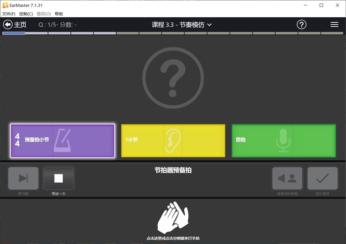 我们点击左下角的“新问题”按钮,开始节奏模仿训练。