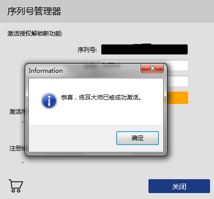 弹出序列号管理器,填写序列号、名称、电子邮件即可解锁新功能。