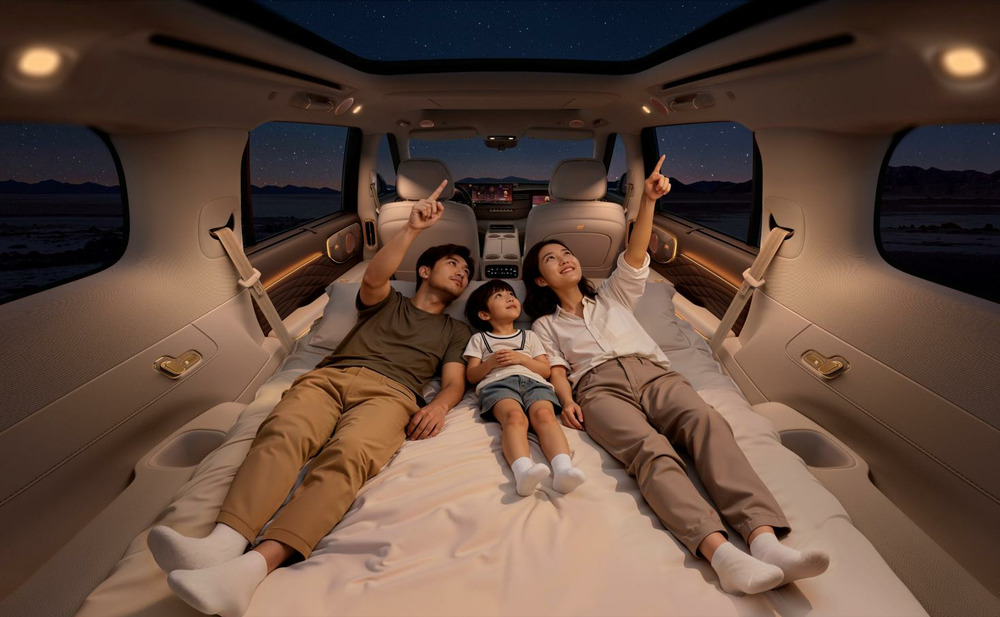 作为豪华旗舰,智己LS9拥有宽敞舒适的空间,堪比都市移动大平层,也可以变身为户外移动野奢营地。它拥有同级别车型中领先的86%超高得房率,全车配备三把零重力座椅,更有贵妃椅、超级大床房模式,让全家人都能随心享受。智己LS9还是首款搭载丹麦豪华音响品牌B&O的自主品牌车型,让每一个座位都能享受到顶级歌剧院般的极致体验。全球首搭的4D机械按摩座椅,按摩强度是气动按摩的7倍,让每一次按摩都如同资深理疗师量身定制。行业首创的瞬净新风系统,远超医用建筑的新风标准,让乘客尽享清新呼吸。更让人惊喜的是,智己LS9行业首创智控地暖系统,可以实现全车均匀升温,让肌肤感受到温润舒适。独家的野奢户外套装,可以实现24小时用水自由,无论是骑行徒步后更衣,还是溯溪后给孩子冲脚,都能让户外生活像在家一样舒适,是喜欢轻户外运动家庭的理想选择。