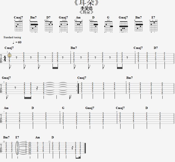 在这里,我们用李荣浩老师的《耳朵》来举例,这首歌的chord谱在网上非常容易找到,大家可以搜索一下。