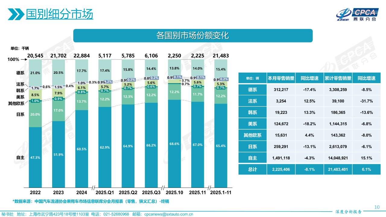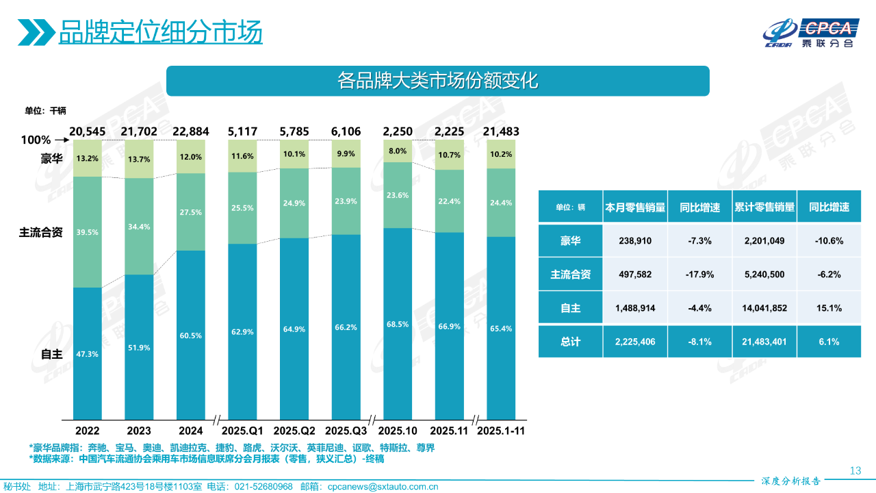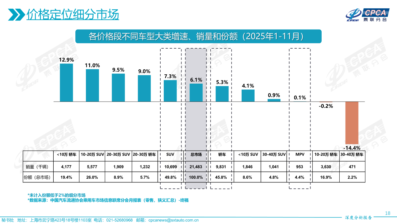 乘联分会发布11月份全国乘用车市场深度分析报告,涵盖总体市场、车型大类细分市场、国别细分市场、品牌定位细分市场和价格定位细分市场。