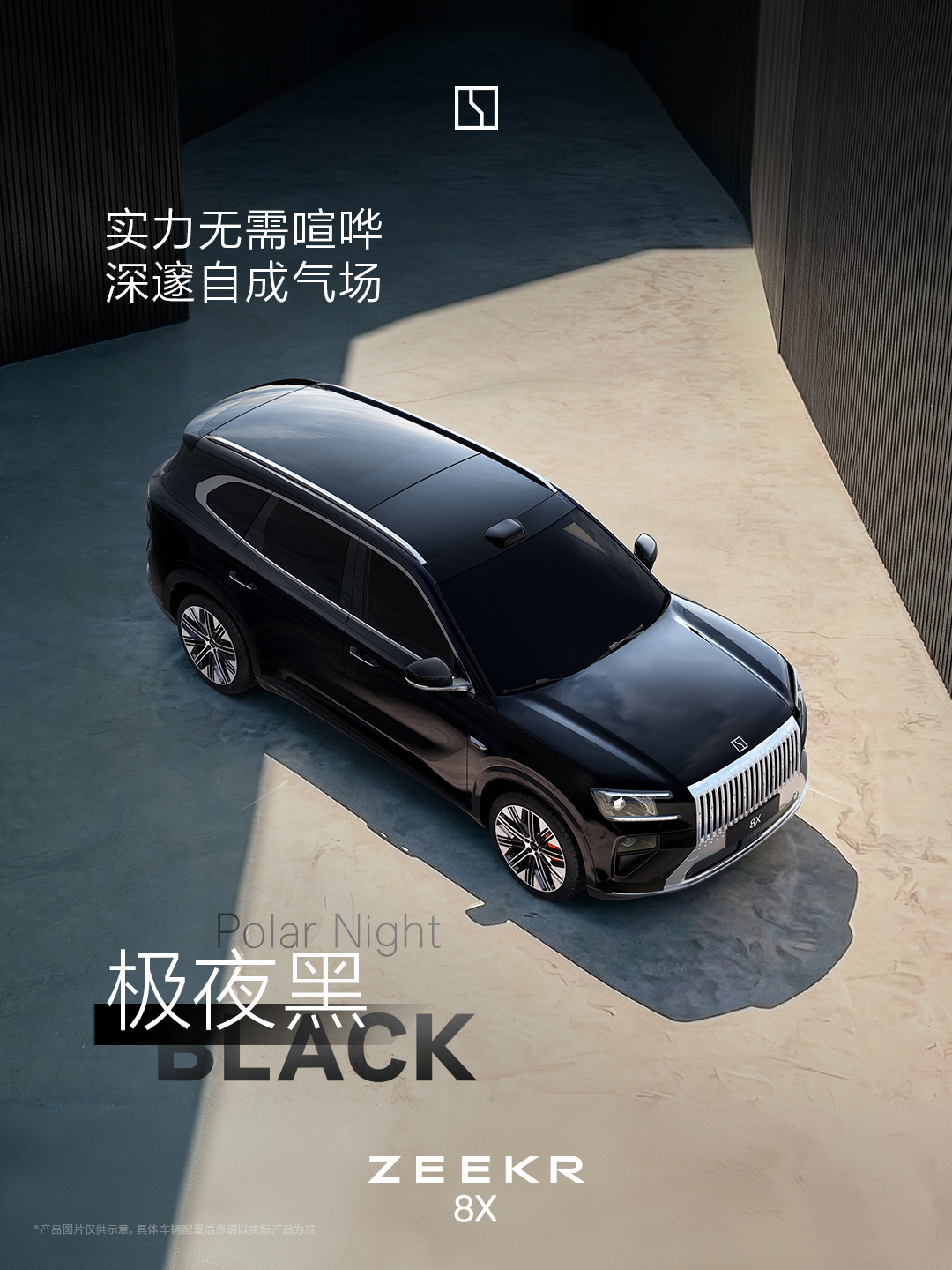 极氪汽车今日公布极氪 8X 极昼白、极夜黑官图,“极昼白,采极地永恒之光,纯粹定义新境;极夜黑,取宇宙静谧之力,深邃自成气场”。