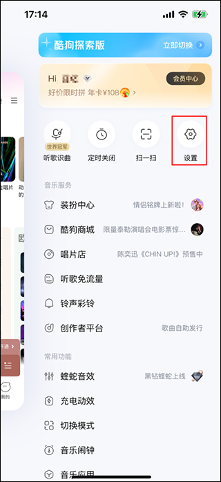 2、在弹出的页面当中点击“设置”选项;