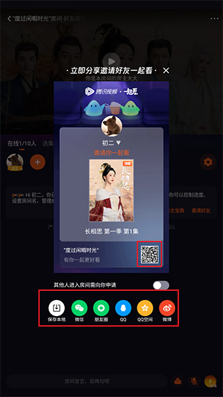 7、生成的二维码让你的好朋友扫描一下或者发送连接点击就可以实现多人一起看电影啦