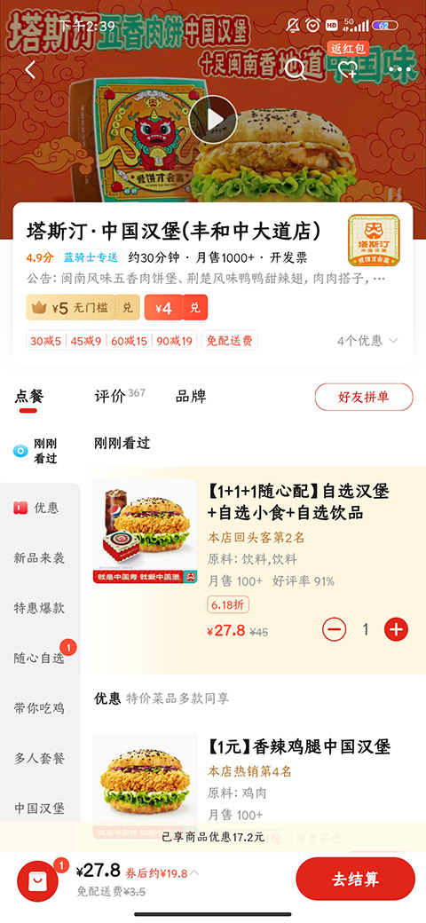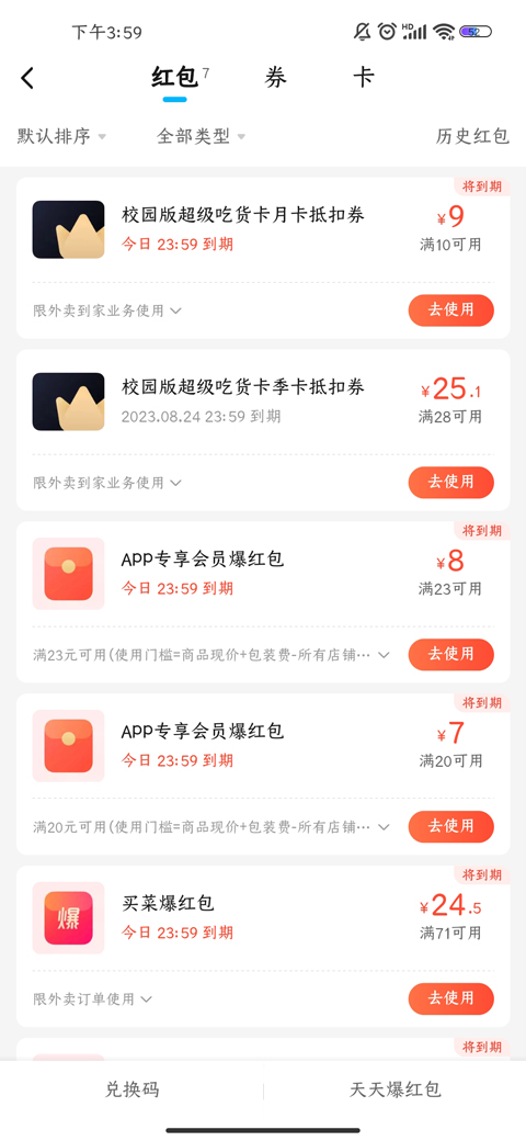 饿了么在红包卡券这块做得优惠力度就会比美团要小一点,但是会发现饿了么的红包有一个膨胀功能,可以邀请几个好友助力,让红包变得更大,这也是饿了么的红包营销手段。