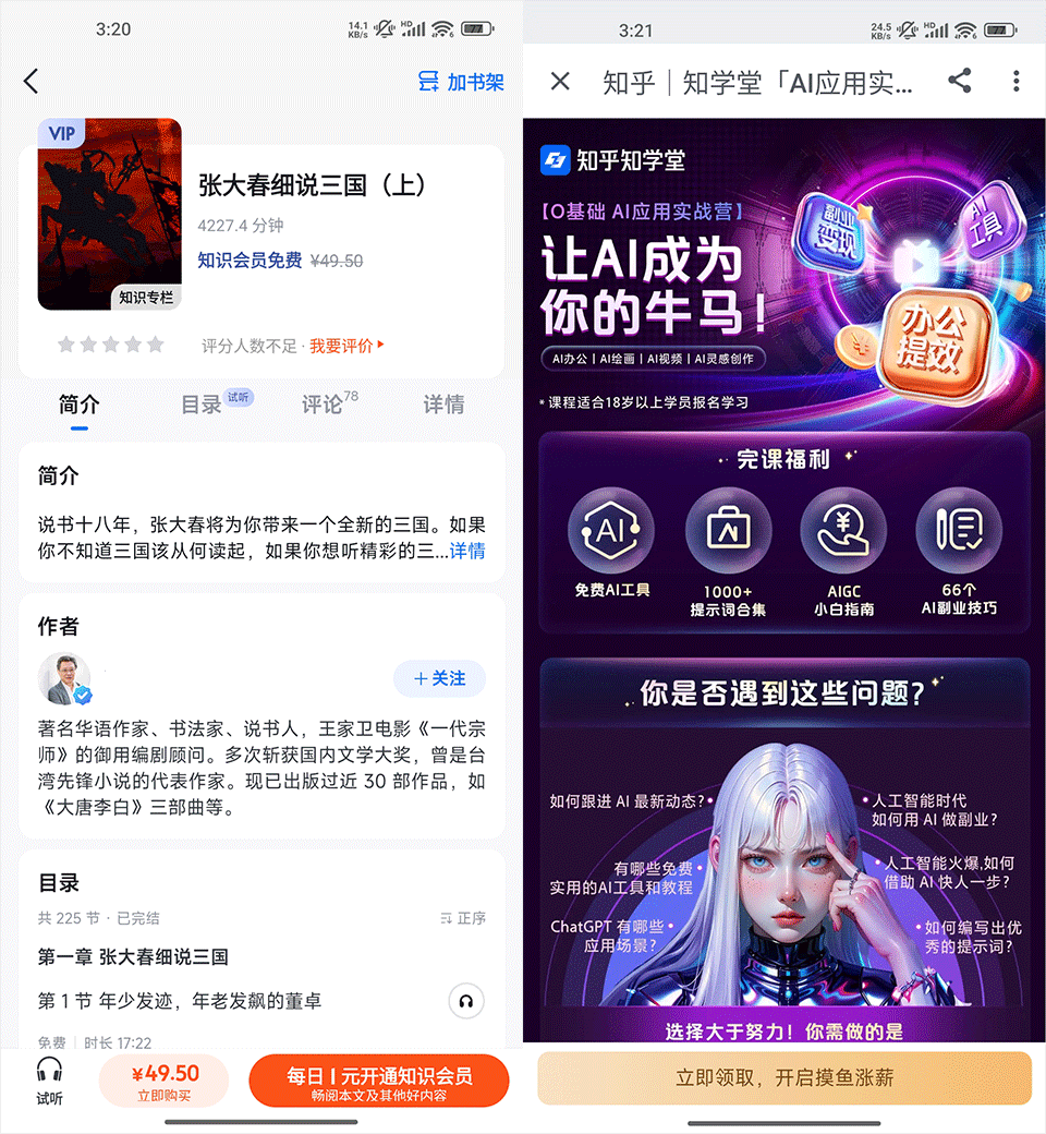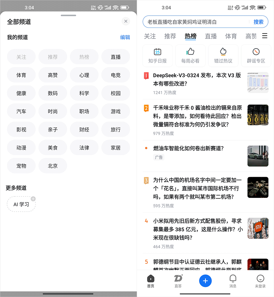 2、知乎和小红书的页面对比