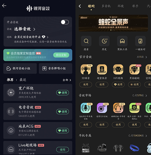 除此之外,酷狗音效也比QQ音乐的音效更多一些,QQ音乐的银河音效略少,选择范围也更小。