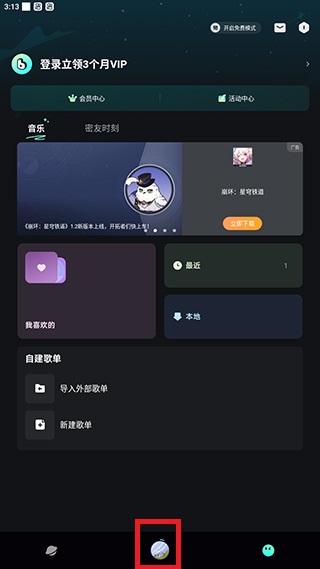 1、打开波点音乐首页,点击底部【播放器】。