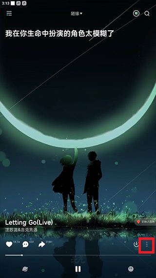 2、进入到歌曲播放页,点击底部【三个点】。