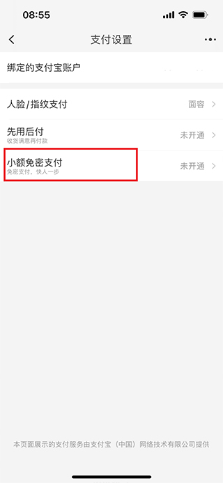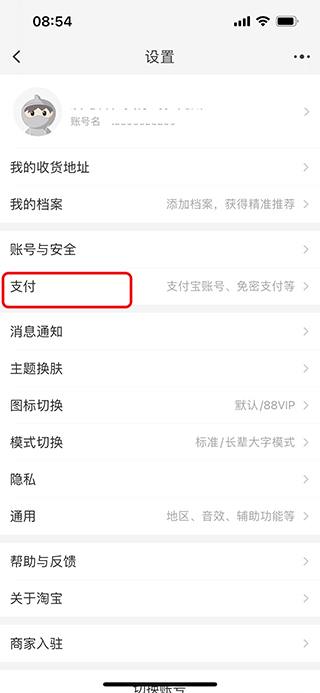 3、进入设置界面,点击屏幕中间的“支付”选项;