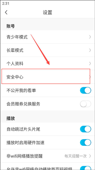 3、紧接着选择账号安全