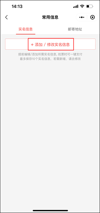 3、进入到常用信息页面,点击实名信息列表下的“添加/修改实名信息”选项;