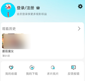 3、在弹出页面中,点击上方的 “登录/注册”。