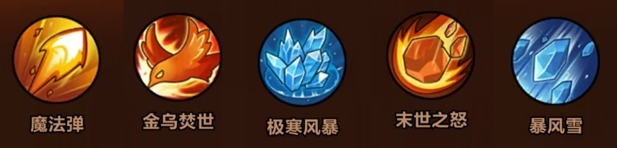 技能选择:魔法弹+金乌焚世+极寒风暴+末世之怒+暴风雪