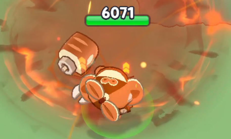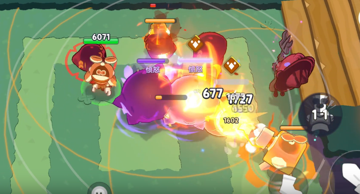 用这个角色的时候,节奏感比较重要。基本攻击要保持,这样炮台的冷却才能持续缩短。炮台Mk.1放出来之后,趁冷却时间里继续扔扳手,等绝招好了,再配合队伍里有土属性的饼干一起打。这样整体伤害会比单独用麻花卷饼干高出不少。