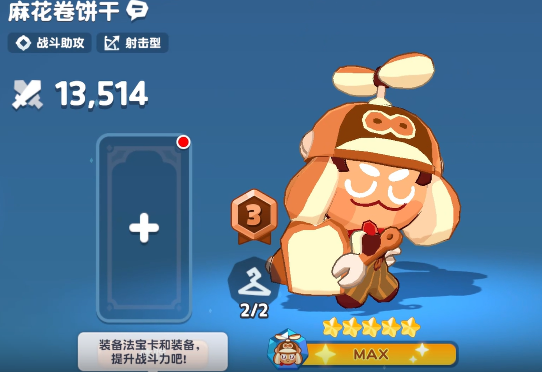 麻花卷饼干的品质是稀有,属于战斗助攻和射击型。从这个定位来看,他在队伍里扮演的角色比较特别,不是纯粹往前冲的那种,而是要配合队友节奏,用炮台慢慢把场面控制住。