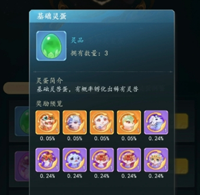 1、主要通过挖宝途径获得的灵蛋开出,前面都讲过真随机游戏,零氪也是能通过绿色灵蛋开出来橙宠的