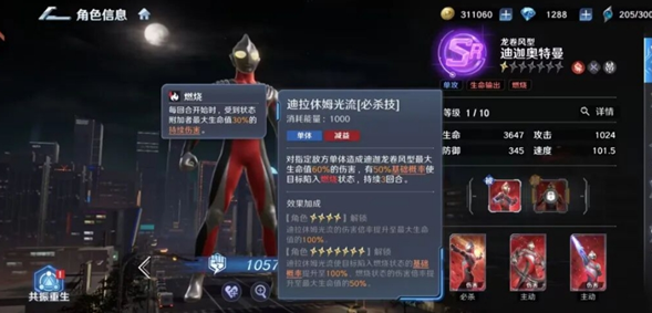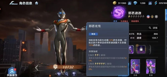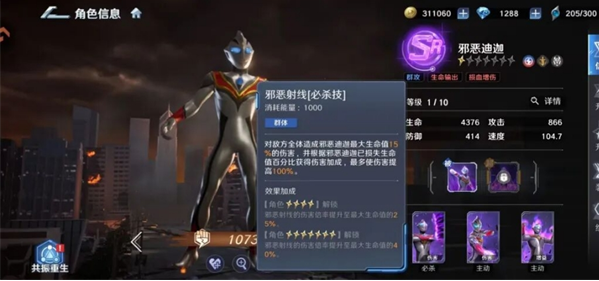 三个迪迦以自身最大生命为基础对敌人造成毁灭性的打击,开荒阶段资源全力集中培养邪恶迪迦即可。