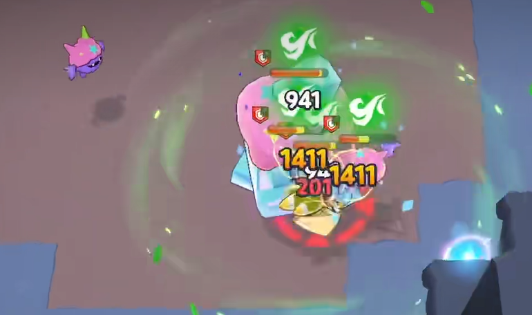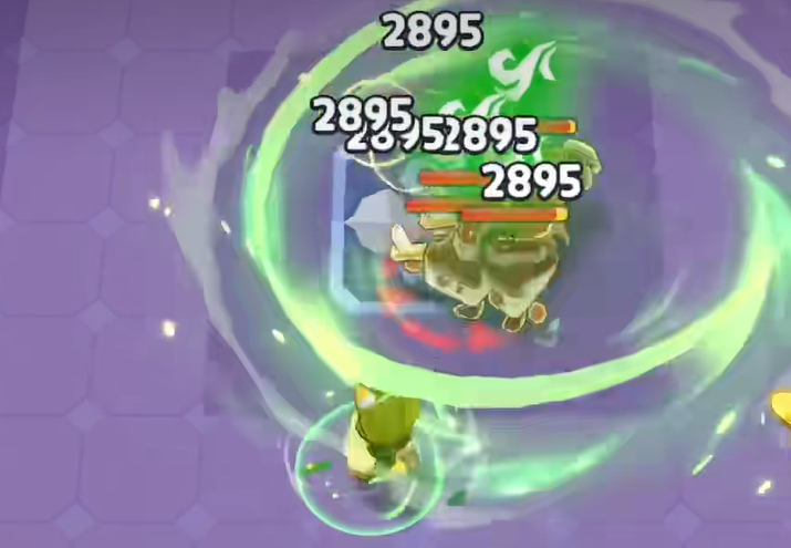 冲锋技能就是快速向前冲,没有太多花样,主要用来调整位置或者快速接近敌人。绝招芭娜芭娜风暴是大蕉饼干最强的技能。把回旋镖丢到指定位置,落地之后会爆炸,爆炸会把附近的敌人往中间吸,同时产生一个持续造成伤害的区域。爆炸命中的时候,同样会给敌人附上「龙卷风」效果,继续降低风属性抗性。这个绝招的使用时机很重要,最好是在敌人聚集的时候丢出去,这样吸引效果,能把更多敌人拉进伤害区域,输出效果会好很多。
