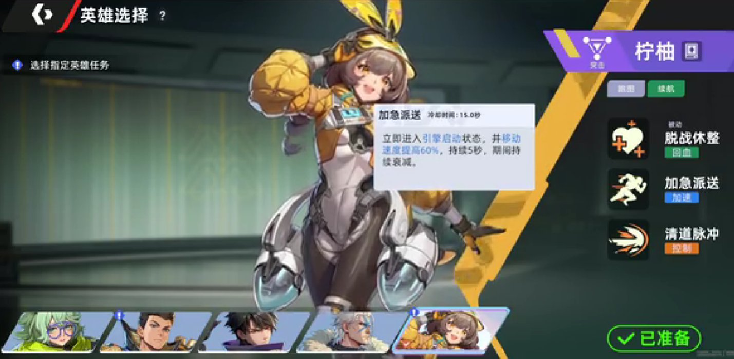 玩家在选择跑刀的时候,先要选择合适的角色,建议玩家直接选择柠柚,因为这个角色天生就是用来跑刀的,毕竟在战斗的过程当中,他其实施展被动技能之后能够快速的回血,并且自身不需要带血包。此时他的背包里面就有很多的空间,这个空间能够摆放物资,一旦触发之后能够提高移动速度,赶路,转点等等,而他的主动技能就是长时间的加速,到突发状况之后,能够立刻拉开移动距离,所以说玩家不管是在躲避敌人,还是想要快点撤离。选择这个角色其实是最合适的。