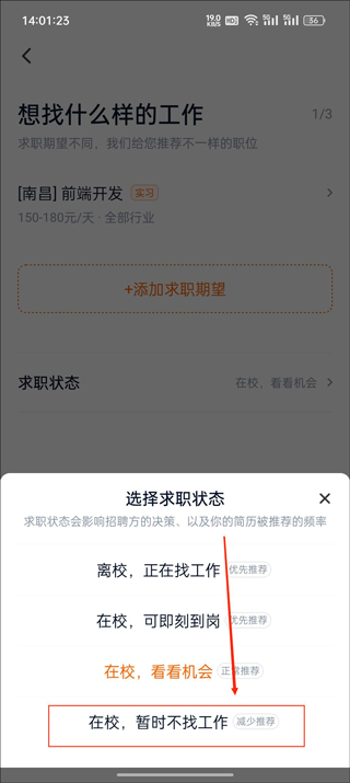 3、紧接着选择【求职状态】