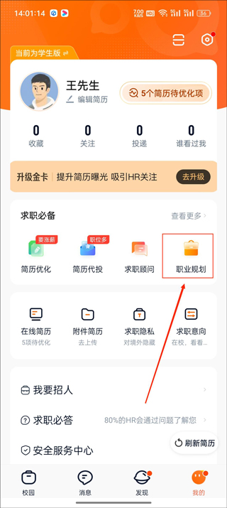 2、然后选择【求职意向】