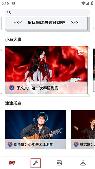 1、在纷玩岛app首页上有各种演唱会购票预热链接,点击购票栏;