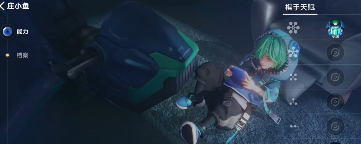 庄小鱼的形象设计是一个头戴兜帽,脚上踩着悬浮摩托的东方潮酷角色,与历史上的一些元素也是有一定关联性的,在设计上非常具有创意。虽然他非常的聪明,但是性格方面比较散漫,无论是做任何事情和完成任务的时候,都比较喜欢用自己的方式进行思考或者是操作,每一场对局中也表现出了那种冷静从容的态度,所以在作战方面还是比较稳定的一名输出选手,可以作为优先选择的棋手之一。