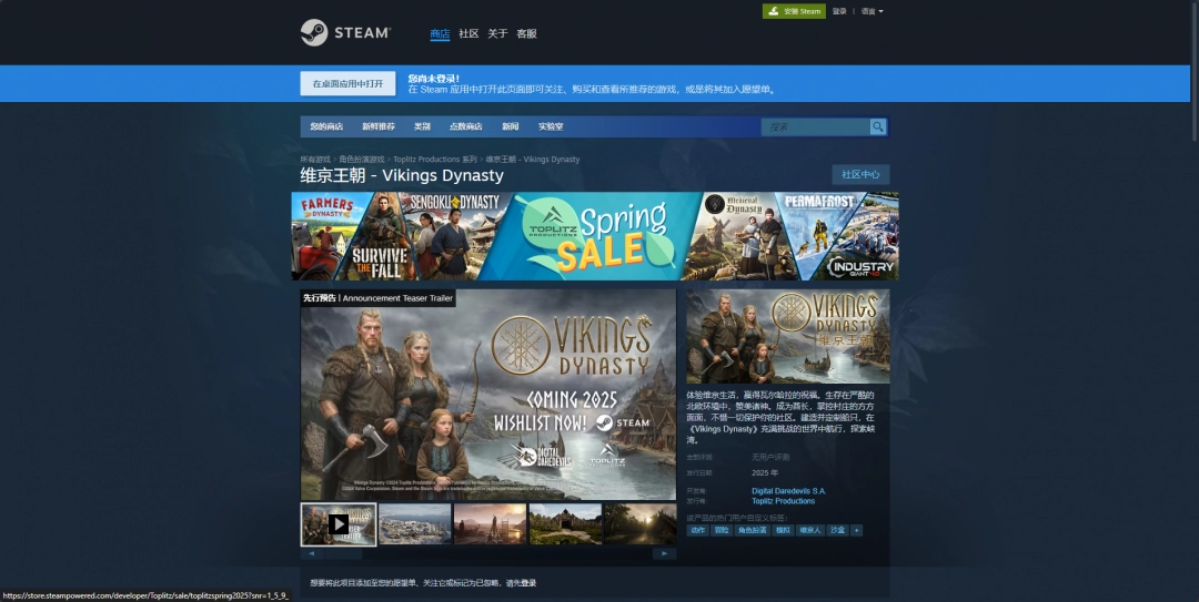 对于PC玩家而言,Steam平台无疑是主要的购买渠道。你可以直接通过以下链接进入商店页面:https://store.steampowered.com/app/2753930/__Vikings_Dynasty/。