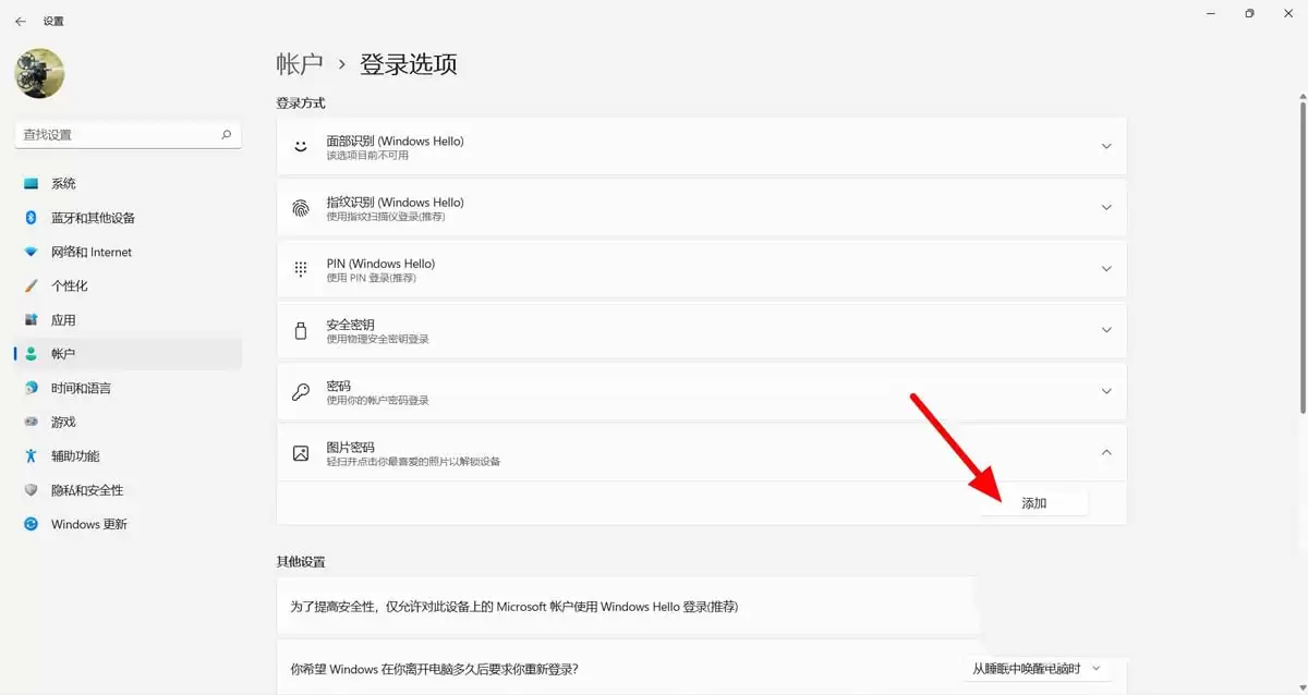 在登录选项页面里,仔细找找“图片密码”这个条目,点击下方的“添加”按钮,开始创建流程。