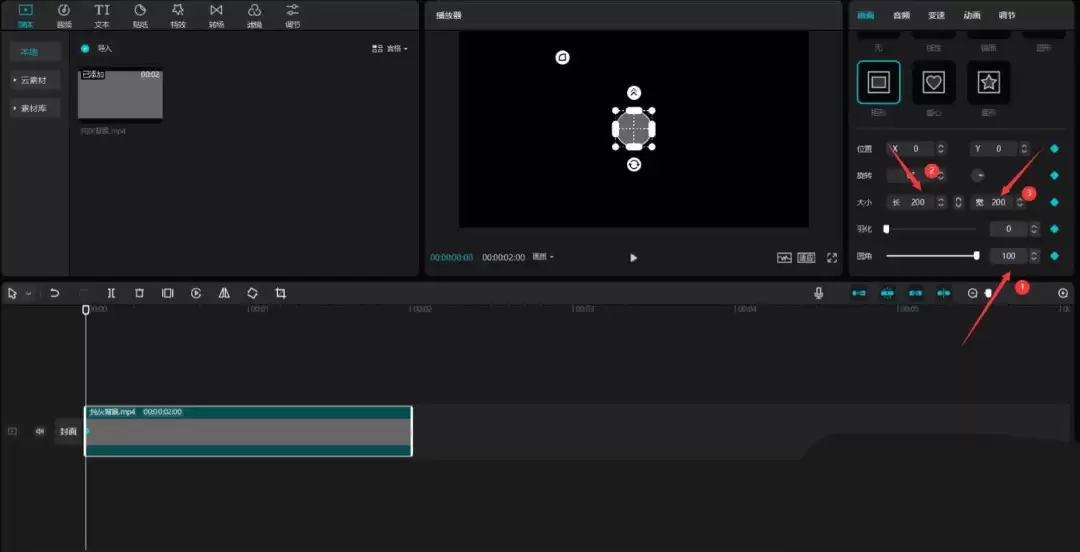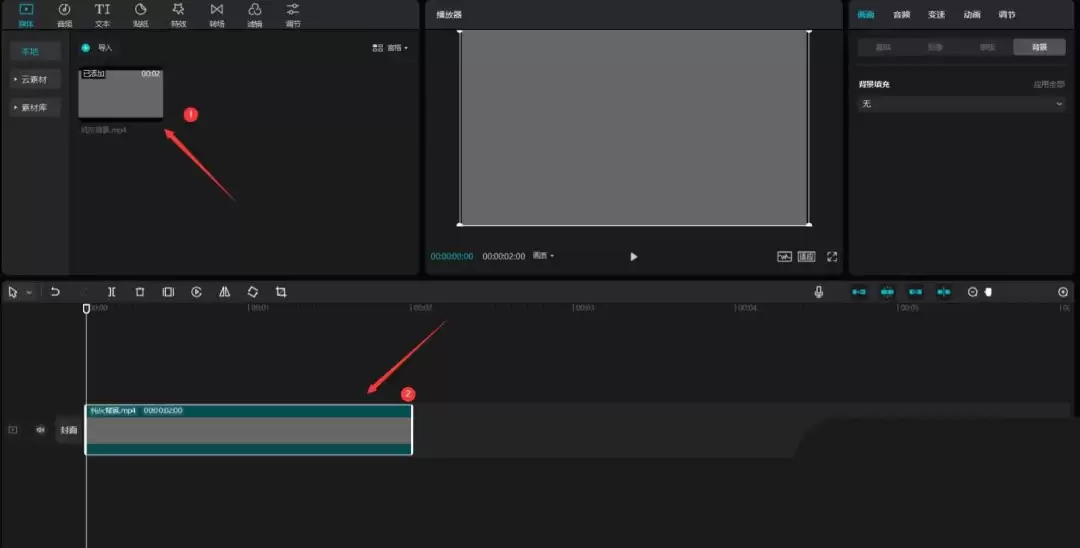 导入成功后,把这段视频拖到主视频轨道上。接下来,所有的魔法都将在这段2秒的视频上发生,如下图所示。