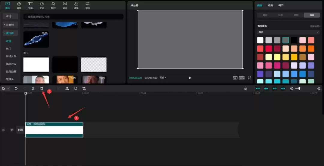 导出完成后,轨道上这个白场素材的使命就结束了。选中它,点击删除按钮,把它清空,为导入新素材腾出位置,如下图所示。