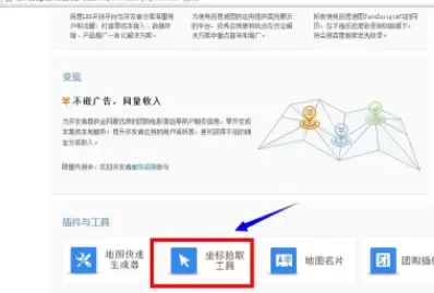 点击进入后,页面内容会比较丰富。别着急,只需向下滚动页面,在“工具支持”的栏目里,你就能找到我们需要的“坐标拾取器”。它的位置参考下图: