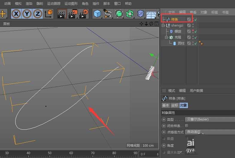 绳子总不能一直是直的螺旋吧?我们还需要它沿着特定路径弯曲。用样条工具,绘制出你心目中绳子应该走的那条曲线,可以是任何形状。