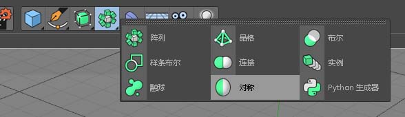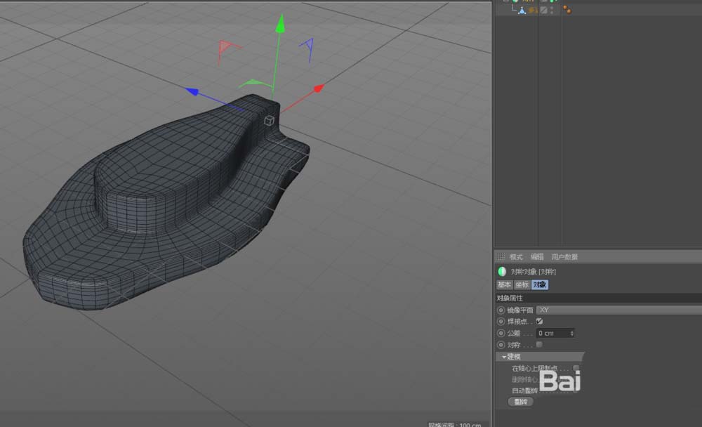第一步,给这个多边形对象加上一个“对称”变形器。